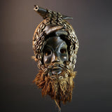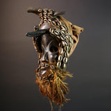 African Dan Antelope Mask Tribal Carved Wood Face Côte d’Ivoire Cowrie Beard Horns Ritual Wall Art Decor Mask African-G5671