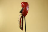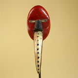 African Dan Bird Mask – Red Painted Wooden Ritual Mask with Long Beak- G6270