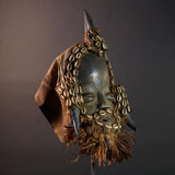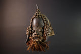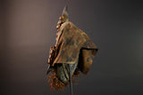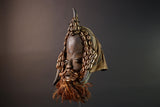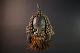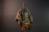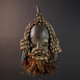 African Dan Horned Mask Carved Wood Cowrie Shell Horsehair Textile Ritual Art Decor West Africa Spiritual Ceremony Authentic Rare-G5665