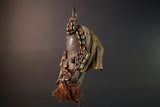 Mask from the Dan people of West Africa is hand-carved in solid wood and richly adorned with natural cowrie shells, raffia-fiber beard and hand-stitched cotton cloth drape. Measures 39 cm (15.35 in) high × 21 cm (8.27 in) wide × 8 cm (3.15 in) deep. This mask brings ancestral ritual energy to any space, repeating the central keyword “mask” in its ceremonial context while preserving authentic tribal character.