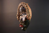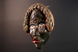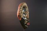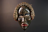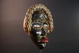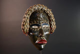 African Dan Mask Carved Wood Tribal Face Cowrie Shell Headdress Liberian Ritual Wall Art Handmade Collectible-G5666
