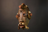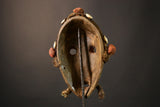 Behold an exquisite example of African artistry: a wooden mask of the Dan people, celebrated for their expert craftsmanship and spiritual symbolism. This mask, with its elongated oval shape and iconic bulbous forehead, captures the essence of Dan cultural heritage and spiritual practice.
