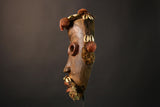 Adding to its authenticity, plant fibers elegantly twisted and plaited mimic hair and a beard, connecting the wearer with ancestral spirits. This mask is not just art but a piece imbued with history and sacred use. It is rubbed with oil, a traditional practice that enriches the surface with a rich patina that speaks of its ritual past.