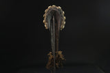 Among the most iconic African masks, this sculpture stood out among the eleven types of Dan masks (Fisher and Himmelheber) because of its circularly hollowed out eyes to allow for better vision. These masks named gunye ge "racing masks," with an oval face and slightly concave center, were produced among the northern Dan and intended for participation in racing events. As for the zapkei, they intervene to prevent the spread of domestic fires during the dry seasons. Armed with a stick, they threaten unwary women and confiscate an object as a fine. Some of these masks ,the go ge , provided with a particularly sophisticated braided headdress, were only exceptionally used.