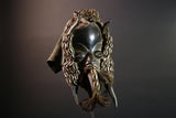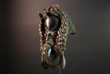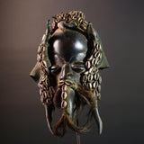 Authentic Dan Tribal Mask Hand-Carved Wood & Cowrie Shells – African Ethnic Wall Décor, Handmade Côte d’Ivoire Ritual Art, Fiber Beard-G5650