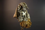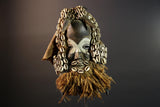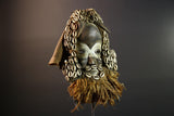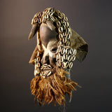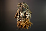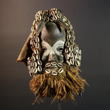 Authentic Dan Tribe Shell Mask Hand Carved Cowrie Raffia Beard African Wall Decor Tribal Art Sculpture Collectible Home Hanging Mask-G5695