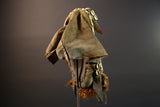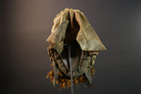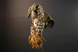 Elevate your space mask with this authentic Dan tribe shell mask, a hand-carved wood mask adorned with natural cowrie shells and raffia fiber beard. This tribal art sculpture from West Africa makes a stunning wall hanging decor, showcasing exceptional craftsmanship and cultural heritage. Measuring approximately 13.6″ H x 7.7″ W x 3.1″ D (34.5 cm H x 19.5 cm W x 8 cm D), it’s ready to mount and enjoy. A truly unique collector’s item that adds tribal charm and elegance to any home or gallery.