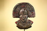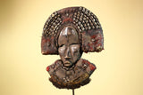 Dan Tribal Mask Cowrie Shell Cloth Wood African Ceremony Art Liberia-G5990