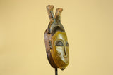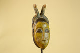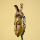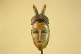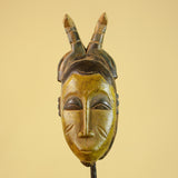 African Baule Horned Mask Wood Carving – West African Tribal Ritual Art-G6214