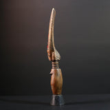 Fertility dolls among the Baule are crafted with intention and symbolism. They represent ideal beauty and maternal power, often associated with blessings for women and protection of new life. The tall coiffure reflects traditional ceremonial hairstyles, while body carvings mimic scarification rites of status.