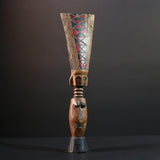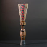 This carved African fertility figure features a striking red crest and tribal detailing — a meaningful symbol of ancestral strength and beauty.