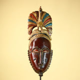 African Guro Mask with Bird Crest Hand Carved Tribal Art Wood Wall Decor-G6056
