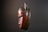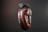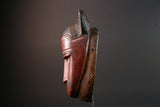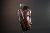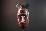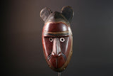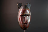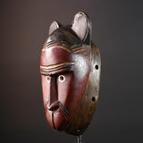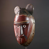 African mask Baule carving with animal ears red brown face tribal spirit wall decor hand carved wood sculpture spiritual home art-G5550