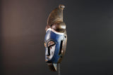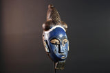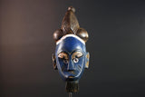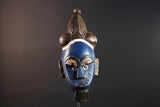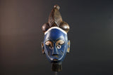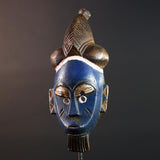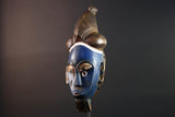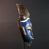 African mask Baule tribe blue face carved wall mask with domed hairstyle scarification marks ethnic wood art tribal home decor-G5545