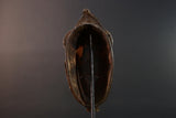 Hang this African mask as a standalone work or as part of a curated mask wall. Its size and vivid color make it a versatile decorative centerpiece.