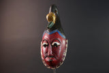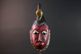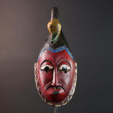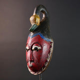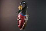 African mask Guro tribe red face carved wood with bird crest white eyes and textured surface tribal home wall art geometric decor-G5538