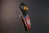 This African mask represents the ceremonial artistry of the Guro people in Côte d’Ivoire. Guro African masks are used in masquerades to honor deities, embody ancestors, and communicate tribal values. Their designs often merge human and animal traits in visually powerful compositions.