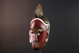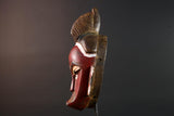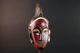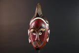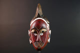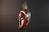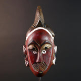 African mask Guro tribe wall art with red face carved crest and geometric cheek design tribal wood mask ethnic home decor-G5546