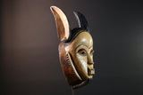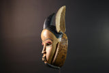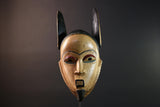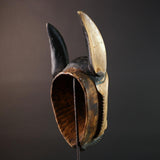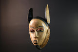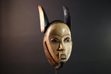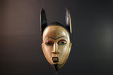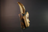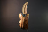 African mask Kwele tribal wall decor with curved horns carved face art collectible home accent heart shaped portrait carving G5571