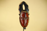 African Wooden Guro Mask with Elongated Face and Carved Tribal Headdress-G6151