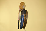 African Wooden Mask with Face long Crest – Baule Style Tribal Wall Art-G6174