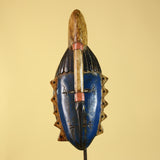 This Baule African mask is a striking example of hand carved wooden tribal art from West Africa. Featuring a tall sculptural form, refined facial structure, and traditional Baule decorative details, this mask embodies the elegance and symbolism associated with Baule craftsmanship.