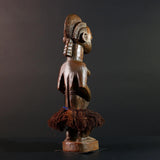 The figure wears a raffia fiber skirt, symbolizing ancestral dignity and fertility. Baule figures like this are deeply rooted in ritual practices and are believed to house protective or guiding spirits for families or villages.
