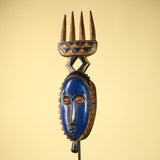 Guro African Mask with Comb Crest Hand Carved Tribal Blue Face Wood Decor-G6058