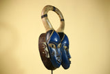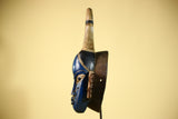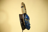 This vintage Guro mask presents a powerful sculptural composition that reflects the traditional style of Côte d’Ivoire. The Guro mask displays a unique dual-face design, shaped with elongated features and painted in deep blue and neutral pigments. Above the Guro mask, large looped horns form a sweeping crest that adds visual strength and symbolic importance. Stand Not Included
