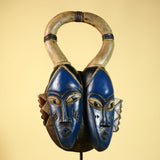 Guro Mask Double Face with Looped Horns Hand Carved Tribal Art Decor-G6060
