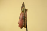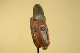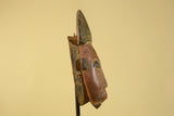 Carved from solid wood, the surface displays a naturally aged patina with visible hand-tool marks that enhance its authentic character. The warm earth tones and balanced vertical form make this African wooden mask well suited for wall display, tribal décor, or inclusion in a curated African art collection.