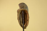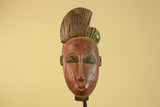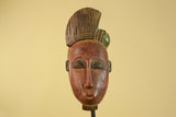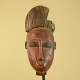 This hand carved African mask in Baule style is a striking example of traditional West African tribal wall art. The elongated facial proportions, refined features, and sculpted coiffure reflect design elements commonly associated with Baule-style masks from Côte d’Ivoire.