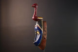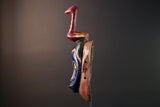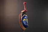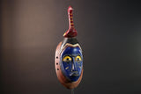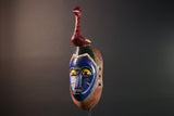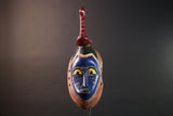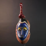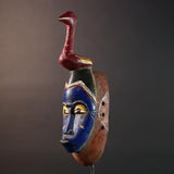 Hand Carved African Mask Baule Tribal Art Blue Face Wall Hanging Mask with Bird Sculpture Wood Decor from Ivory Coast -G5669