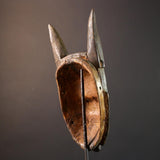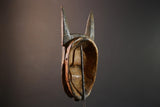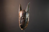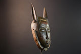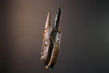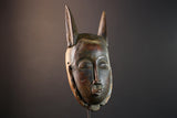 African Baule horned mask, tribal Goli wall art decor, ivory coast wooden face, carved African mask sculpture, spirit wall piece-G5402