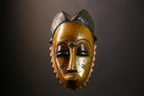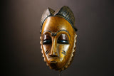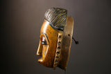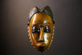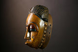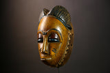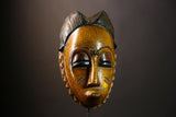 African Baule Mask Antique Wooden Tribal Art Wall Decor Hand Carved Collectible Ethnic Face Sculpture-9456
