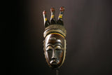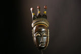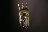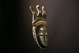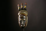 African Baule Mask Hand Carved Tribal Face Art Authentic Wood Sculpture-G4145