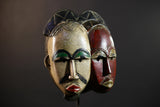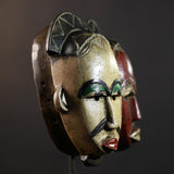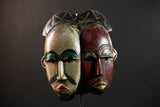 African Baule Mask | Hand Carved Tribal Two Faces | Wall Art Decor Sculpture | Authentic Ethnic Home Accent-G5165
