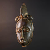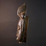 Elegant African Baule mask with scarified facial features and stylized crest, ideal for ancestral wall decor collectors.
