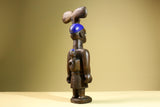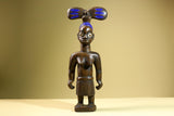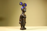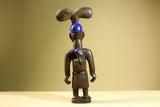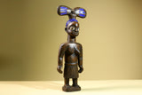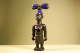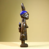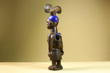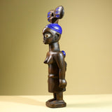 African Baule Mother-Child Statue Wood Figure Tribal Art with Blue Headdress-G5819