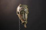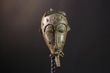 African Copper Mask - Authentic Baoule Yaoure Tribal Sculpture, Unique Decorative Effigy, Ethnic Art Collectible for Home Decor -G3821