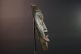 Originating from the Dan people of Côte d’Ivoire and Liberia, this authentic African mask features a narrow elongated face with sharply defined cheekbones, arched brow with incised detailing, and prominent lips painted in deep red. Dan masks were traditionally worn during masquerades, mediating between village and spirit realms.