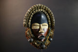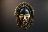 African Dan mask cowrie shell tribal wood wall decor spiritual carving fabric trim ritual mask handmade Côte d’Ivoire ethnic sculpture-G5360
