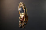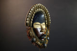 This mask reflects Dan carving traditions from Côte d’Ivoire, used in masked rituals to embody spiritual forces and community roles. It is handcrafted using natural and symbolic materials.