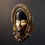 Dan masks are central to ritual ceremonies in West Africa, representing spiritual beings or ancestral figures. This mask features symbolic adornments, including cowrie shells and fabric edging, used to honor tradition and channel guidance.