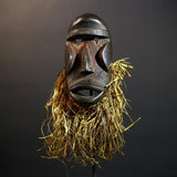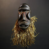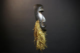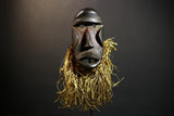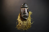 African Dan Style Raffia Mask | Handcrafted Tribal Art Sculpture | Unique Ceremonial Decor | Authentic Wall Hanging Accent Gift-G4793
