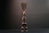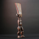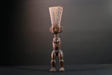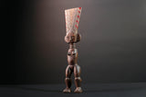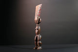 African female ancestor statue Luba carved standing figure with red crest tribal scarification memory carving African cultural art-G5553