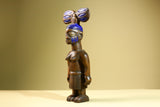 African Female Statue Tribal Mother Child Carved Wood Sculpture with Blue Headdress Handcrafted West African Figurine Art Decor-G5820