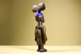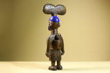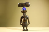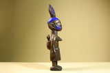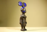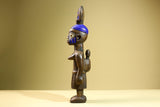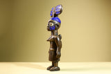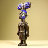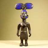 African Female Statue with Child Yoruba Style Hand Carved Wood Tribal Figure Blue Painted Headdress Cultural Home Art Decor-G5824