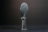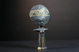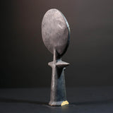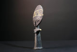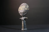 The Akuaba figure is one of the most recognized symbols from Ghana’s Akan people. Traditionally carved by or for women hoping for fertility, these sculptures represent ideals of beauty, health, and prosperity. With its oversized circular head, narrow body, and exaggerated features, this figure expresses both femininity and divine balance, often carried or displayed in homes for protection and blessings.