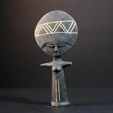 African fertility decor Akan akuaba figure with flat disc head geometric carvings and abstract female form for symbolic wall display G5499